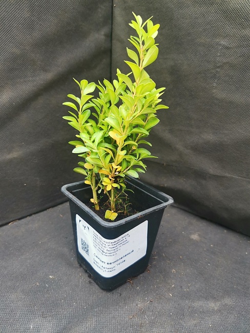 Лист с коротким черешком, почти сидячий, блестящий, верхняя сторона темно-зеленая, нижняя светло-зеленая с желтоватым оттенком. Цветок мелкий, зеленоватой окраски, обоеполый, одиночный. Плод черно-коричневая шаровидная коробочка. Легко поддается декоративной стрижке, форма формируется быстро.