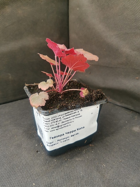 Листья необычны по форме: волнистые, трехгранные, глубокоразрезные. Весной гейхера приобретает темно-оранжевый оттенок, летом — красноватый, а осенью — светло-зеленый. Также удивительно, что гейхеры этого сорта могут менять свой цвет в зависимости от освещенности и стадии развития. Высота этого растения составляет 15-25 сантиметров, диаметр — 25-35 сантиметров. Можно отметить, что на вид гейхера Cherry Cola очень опрятна и хорошо держит свою форму.