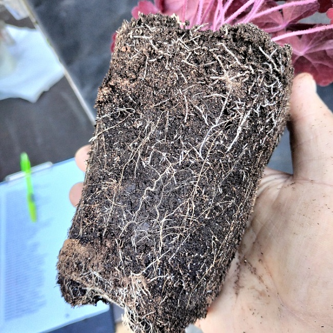 Гейхерелла образует невысокие кустики красивой формы в виде полусфер, высотой 25-30 см, в диаметре 35-50 см. Гибкие розоватые стебли быстро разрастаются. Корни массивные, расположены близко к поверхности.По рисунку прожилок располагаются багровые наплывы, создавая контрастный узор на ярких желтых пластинах. Наибольшая интенсивность цвета отмечается в центральной части. Осенью наплывы приобретают бронзовый оттенок и не теряют своей насыщенности до самых заморозков. У листьев декоративен не только окрас, но и форма – перистая резная, напоминает кленовые разновидности. Листочки приподняты и собраны в букет на длинных ворсистых черенках.