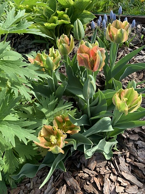 Сорт тюльпанов Артист (см. фото) очень хорош для создания групповых композиций с крупноцветковыми, рослыми тюльпанами. Высаживают этот цветок, как правило, на переднем плане, так как он не отличается высоким ростом – максимально способен вытянуться на 50-55 см, не больше. Стебли тонкие, но плотные, прямостоячие, окружаются не густой прикорневой розеткой из длинных, узких листьев. Цветет однократно, не раньше середины мая.
