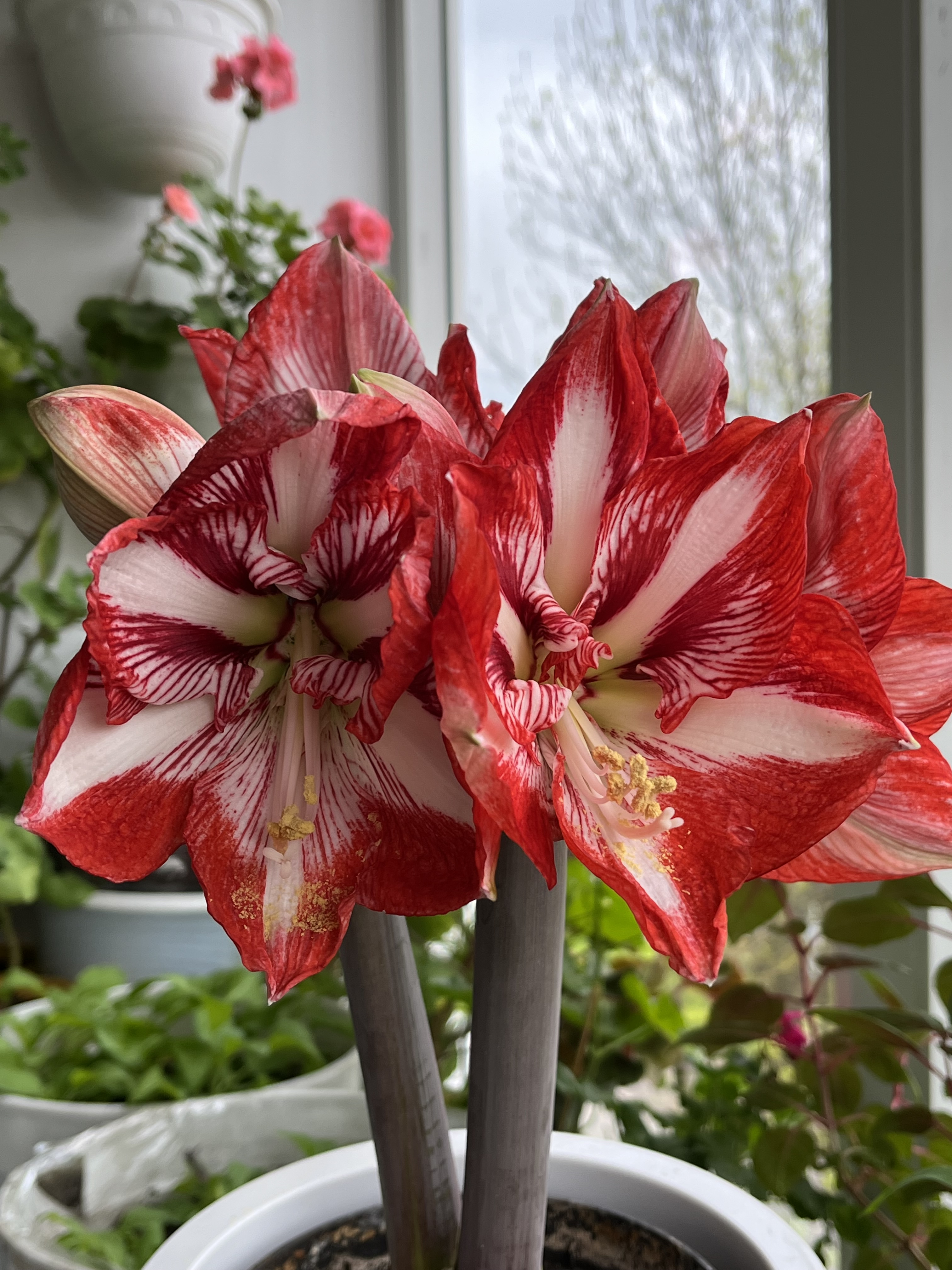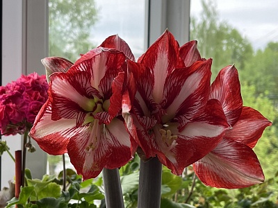 Амариллис крупноцветковый Минерва принадлежит к тем редким сортам, от которых долго невозможно отвести взгляд. Расцветка шести его лепестков создает неповторимый надолго запоминающийся узор.
