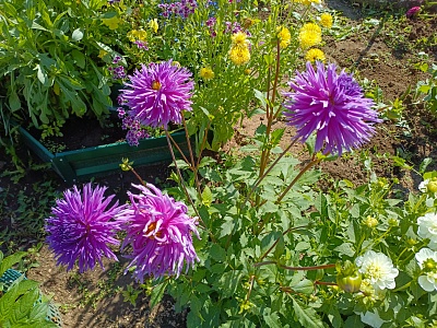 Посадочную яму копать глубиной 10-15см. При посадке корневая шейка должна находиться на 2-3см ниже уровня почвы. Георгины сажают на расстоянии 60-70см друг от друга.